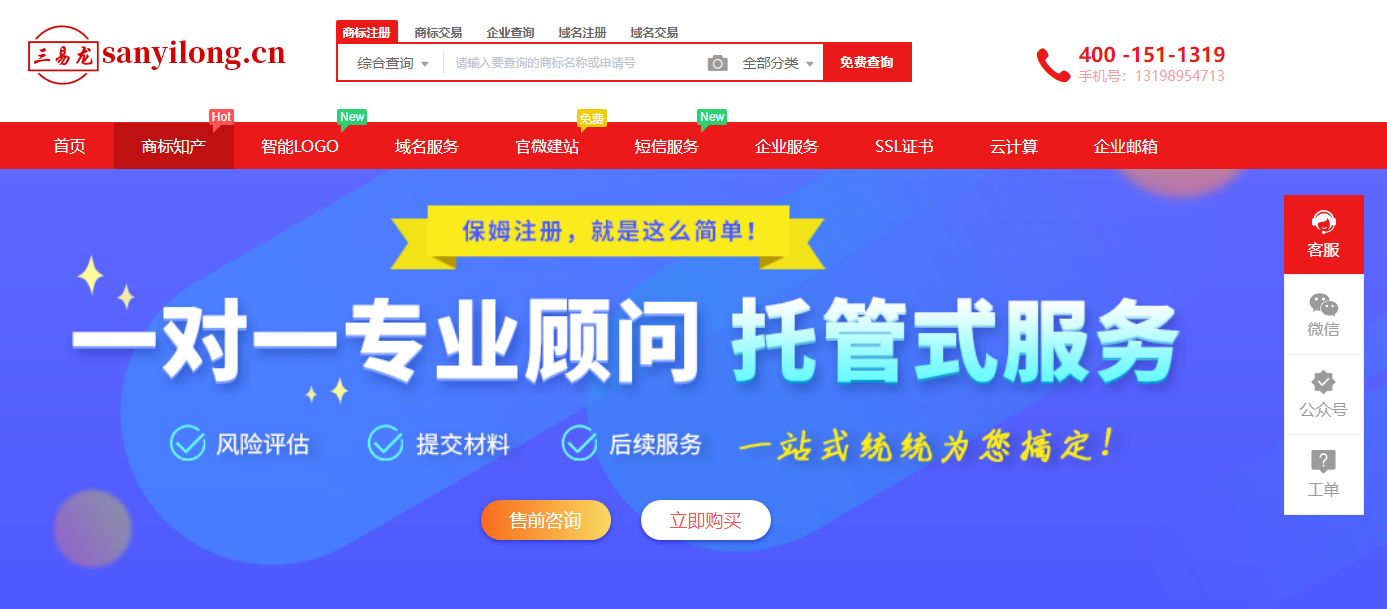 买商标,先查询,交易商标就上三易龙官网 sanyilong.cn 电话:400-151-1319